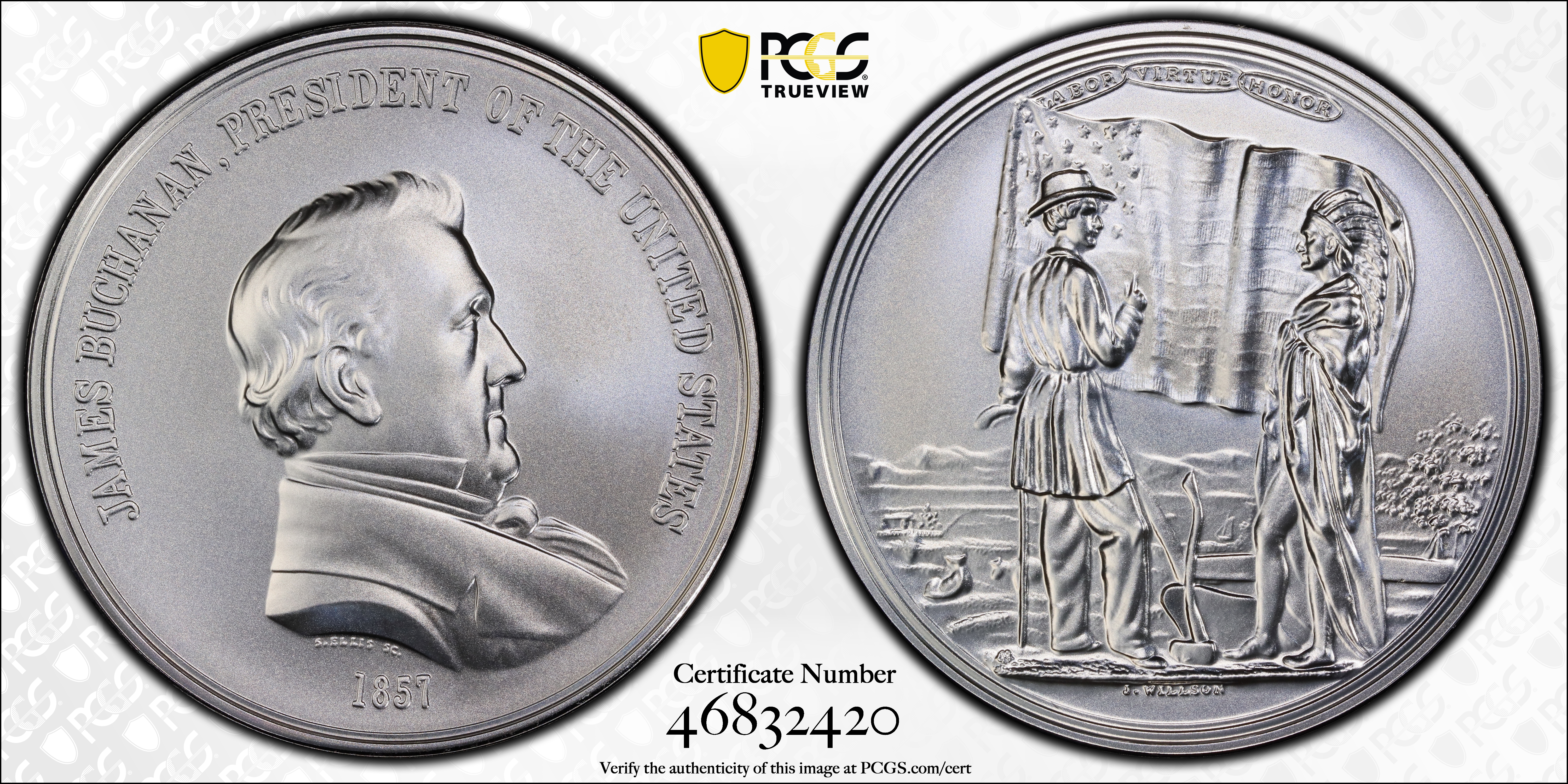 (2023) Medal James Buchanan "1857" Silver Matte Finish First Strike MS69 Certification #46832420, PCGS #917705