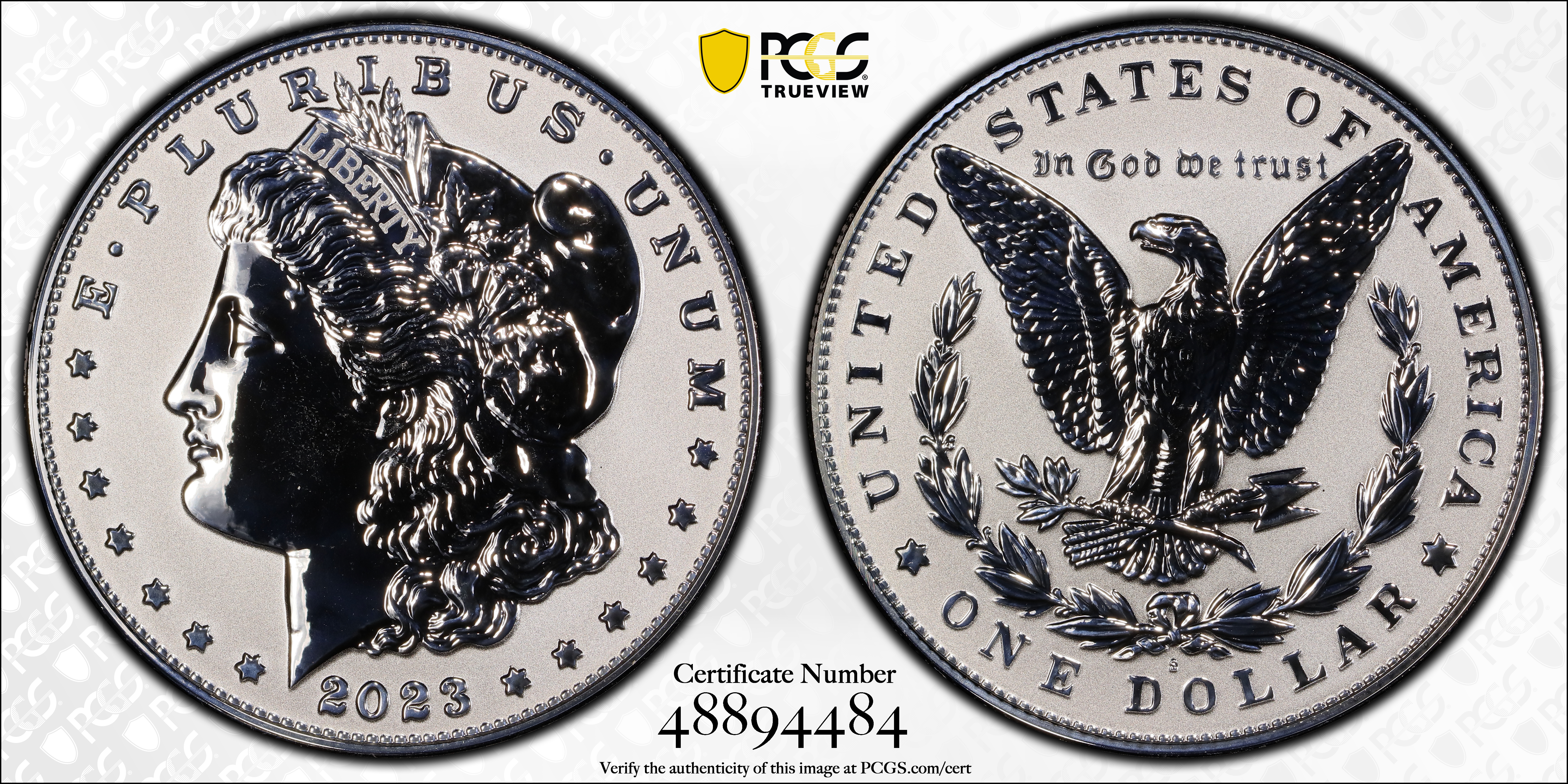 2023-S $1 Morgan Dollar Rev PR Two-Coin Reverse Proof Set First Strike PR70 Certification #48894484, PCGS #928519