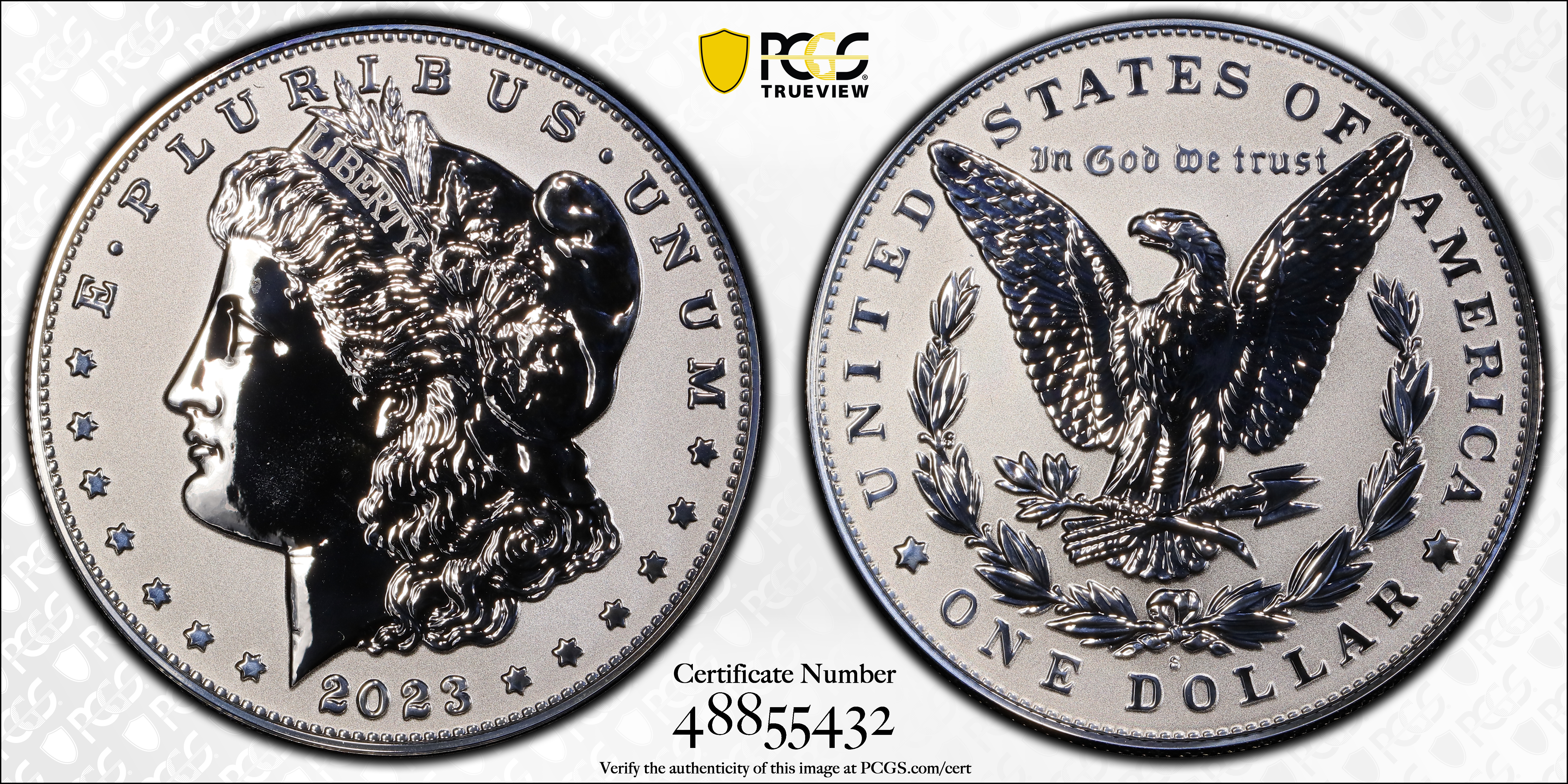 2023-S $1 Morgan Dollar Rev PR Two-Coin Reverse Proof Set First Strike PR70 Certification #48855432, PCGS #928519