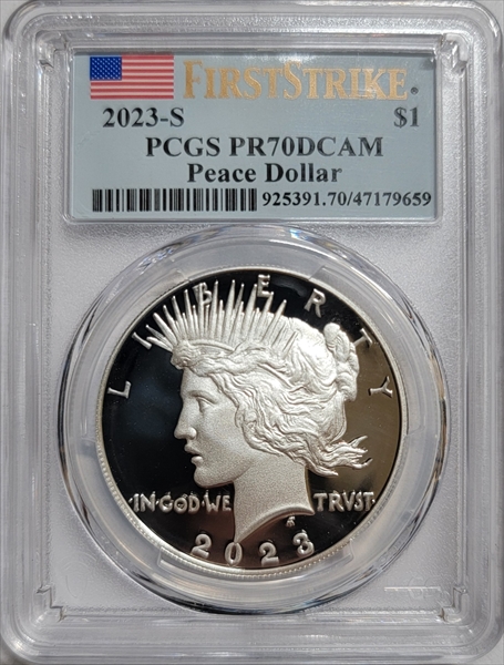 2023-S $1 Peace Dollar First Strike, DCAM PR70DCAM Certification #47179659, PCGS #925391