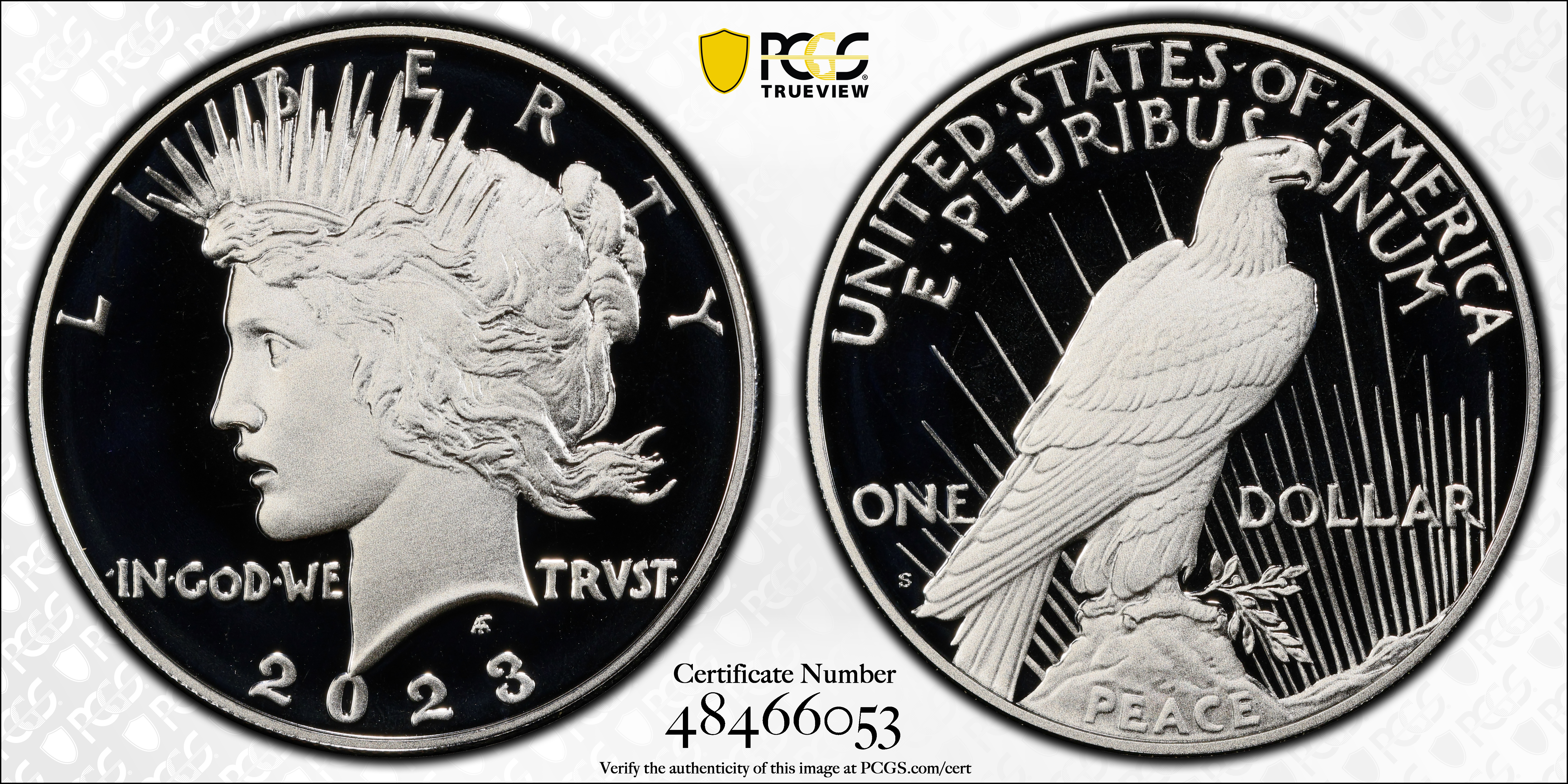 2023-S $1 Peace Dollar, DCAM PR69DCAM Certification #48466053, PCGS #925284