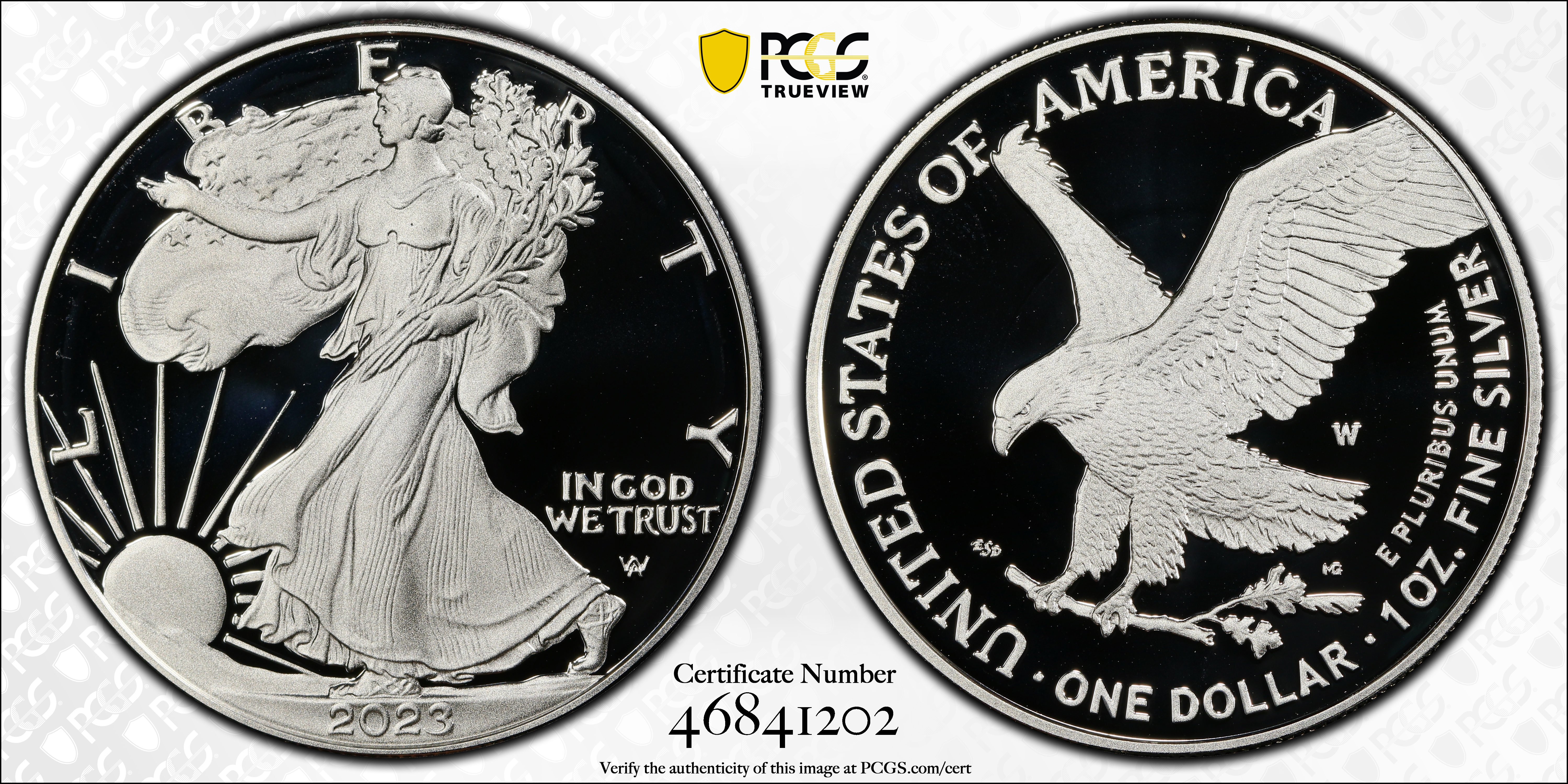2023-W $1 Silver Eagle, DCAM PR69DCAM Certification #46841202, PCGS #917898