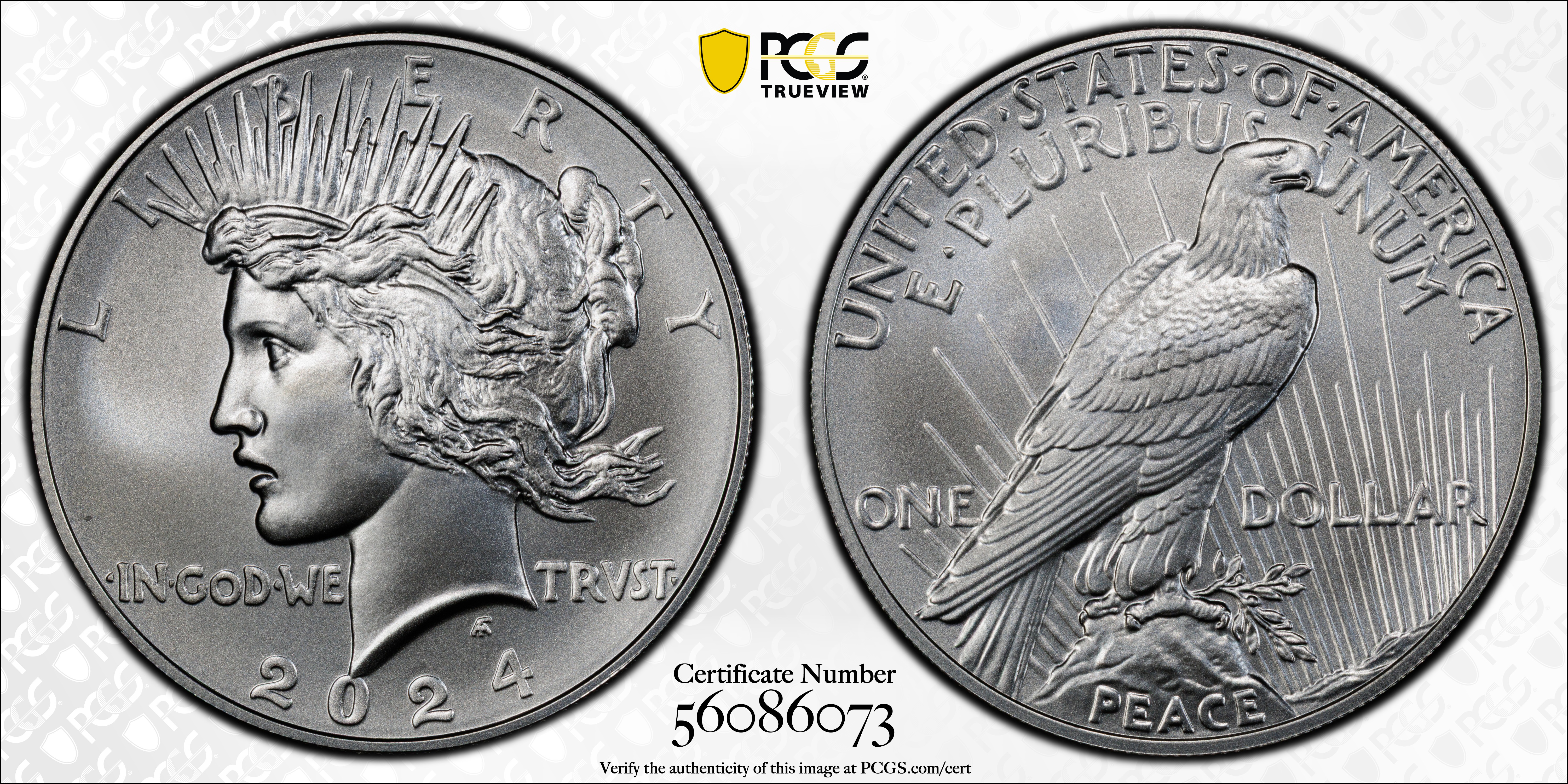 2024 $1 Peace Dollar MS69 Certification #56086073, PCGS #957342