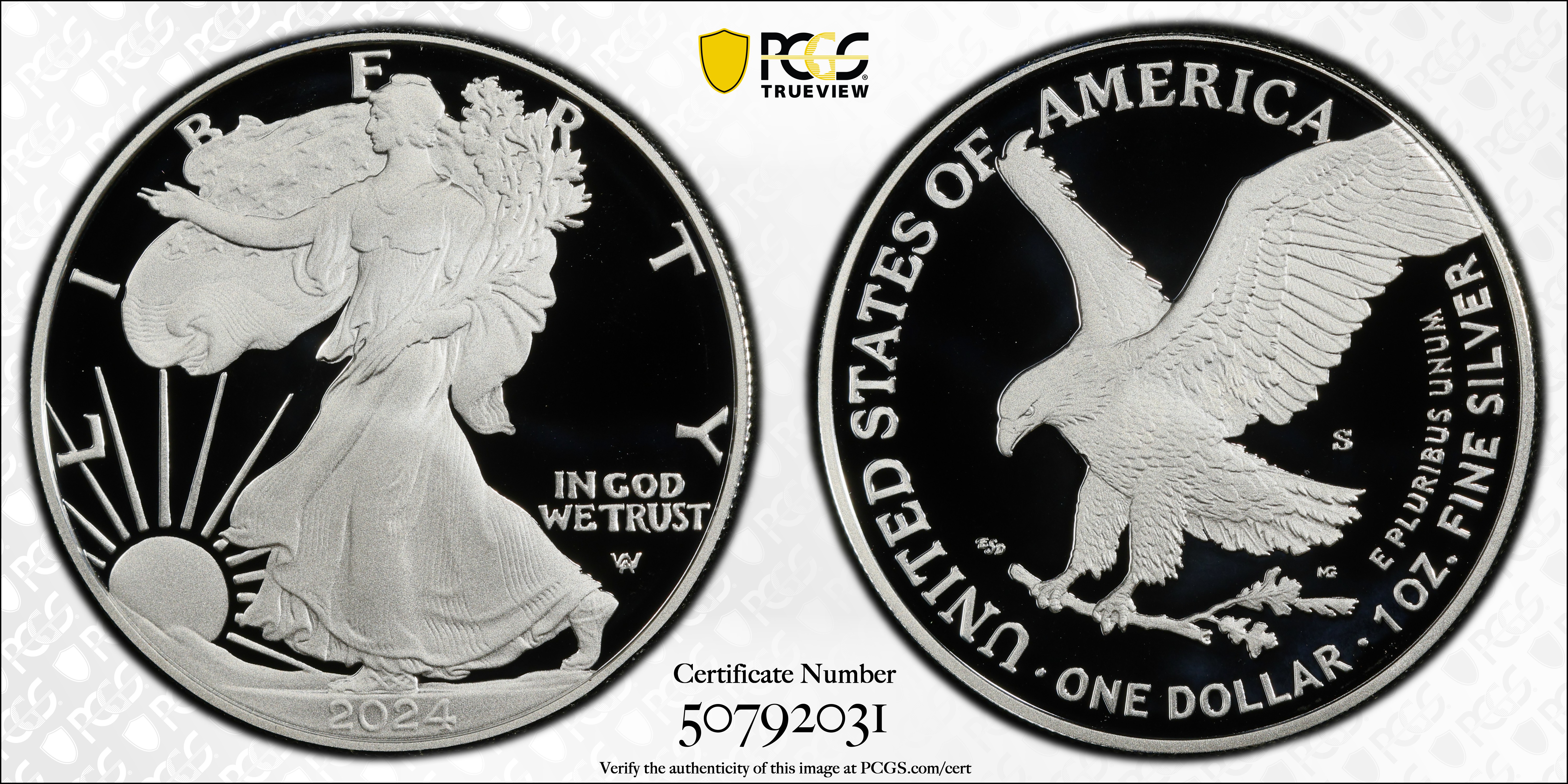 2024-S $1 Silver Eagle First Strike, DCAM PR70DCAM Certification #50792031, PCGS #961900