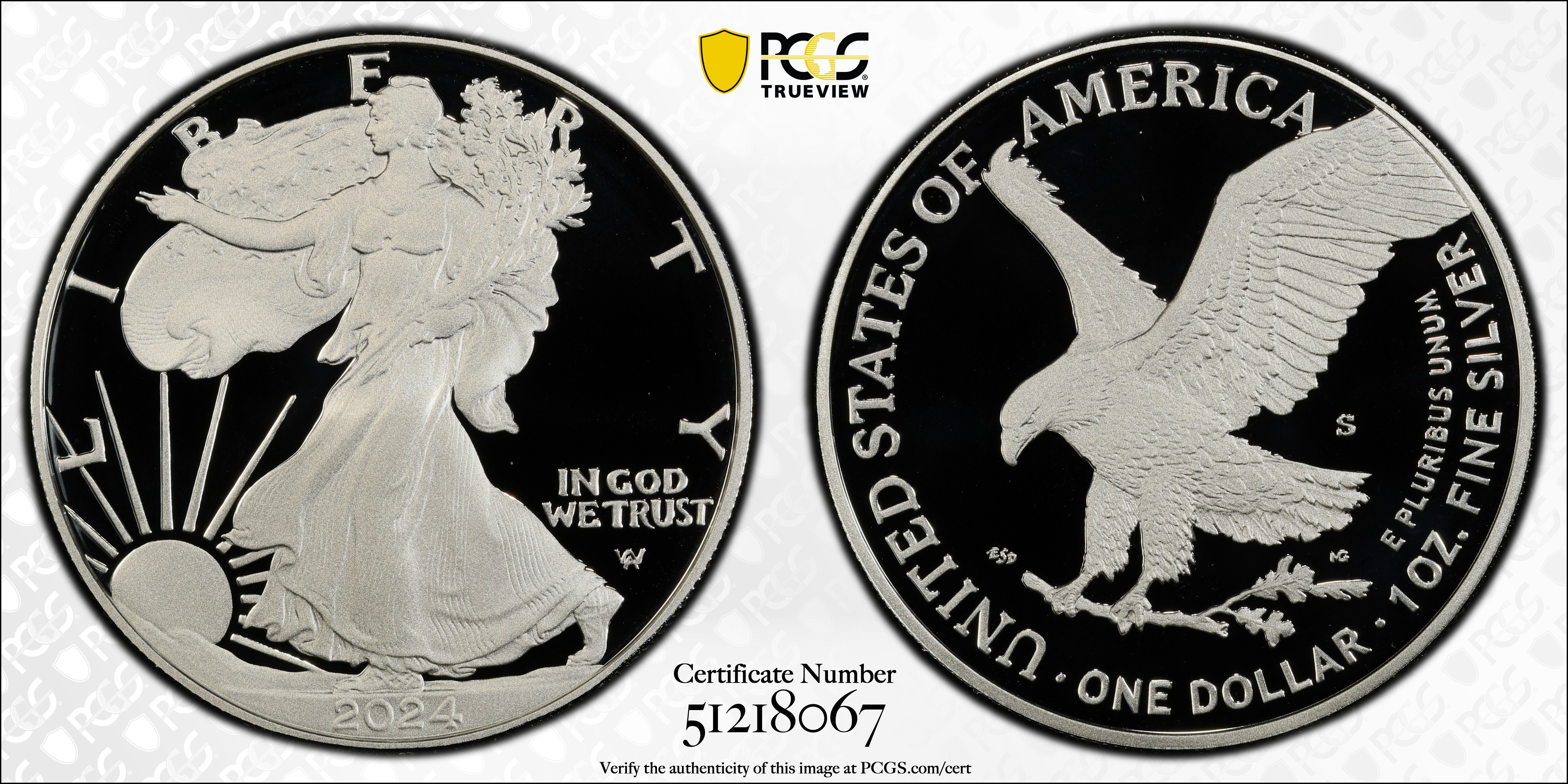 2024-S $1 Silver Eagle First Strike, DCAM PR70DCAM Certification #51218067, PCGS #961900