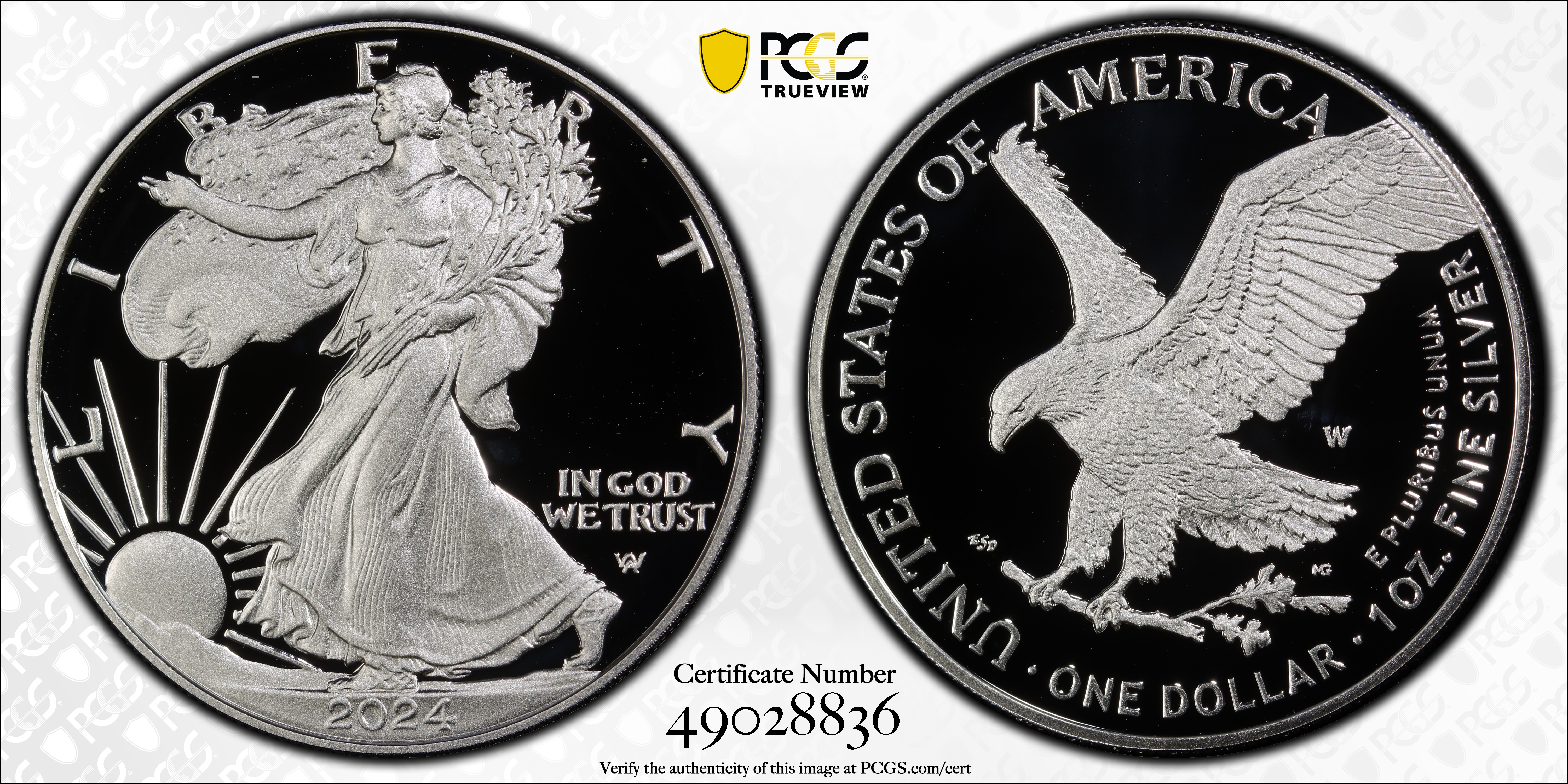 2024-W $1 Silver Eagle, DCAM PR70DCAM Certification #49028836, PCGS #934505