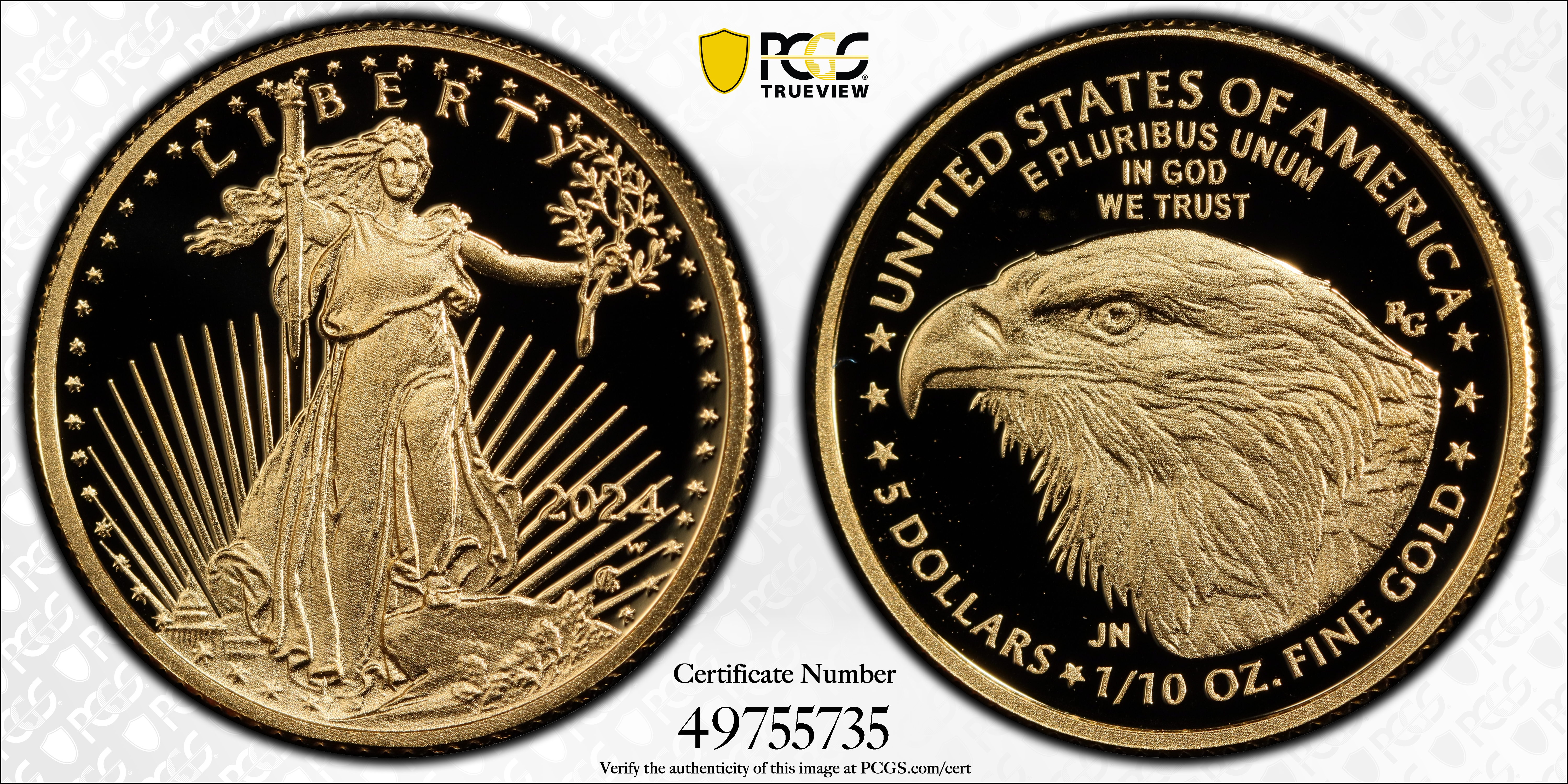 2024-W $5 Gold Eagle First Strike, DCAM PR69DCAM Certification #49755735, PCGS #935985