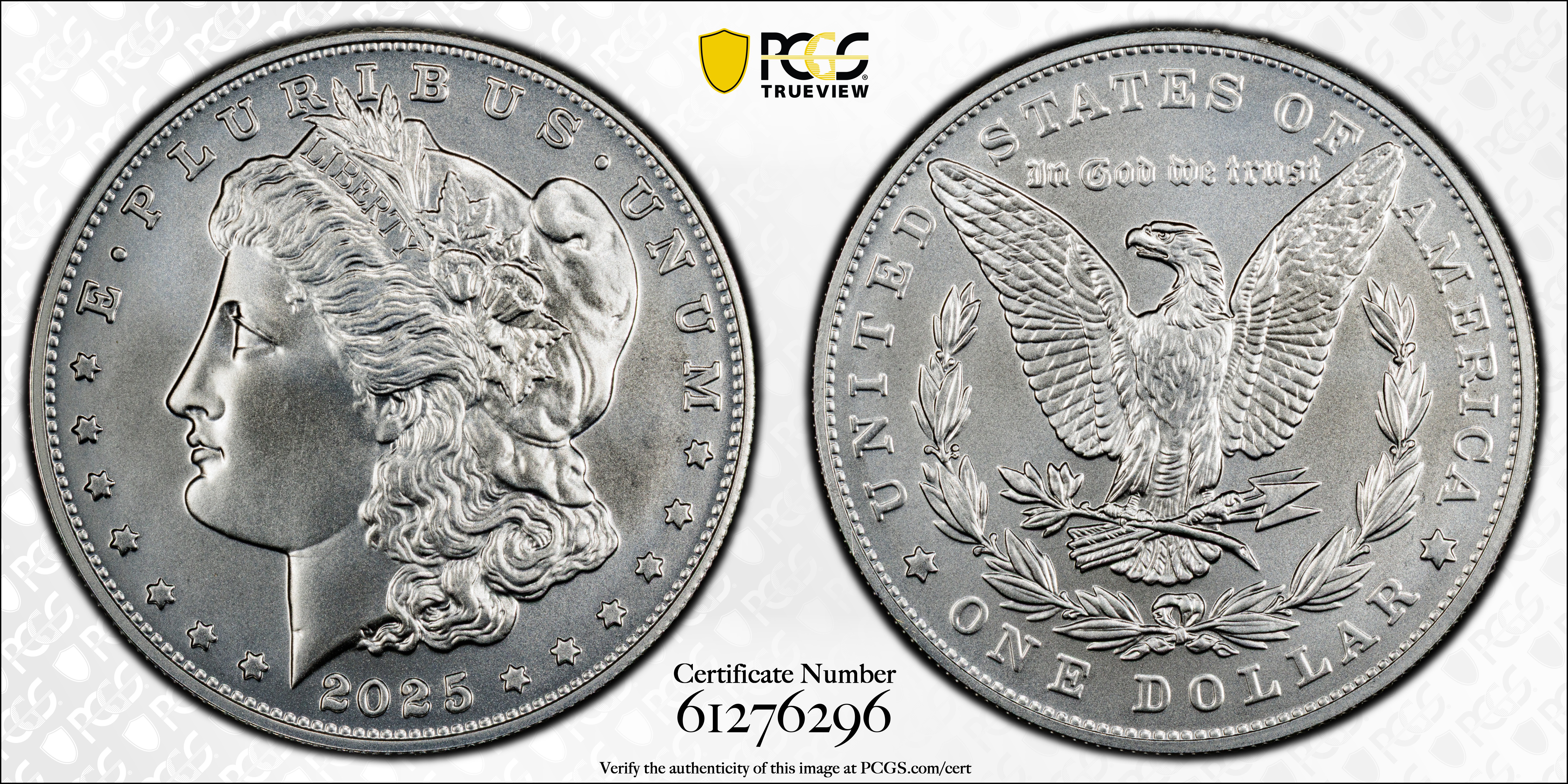 2025 $1 Morgan Dollar First Strike MS69 Certification #61276296, PCGS #994434