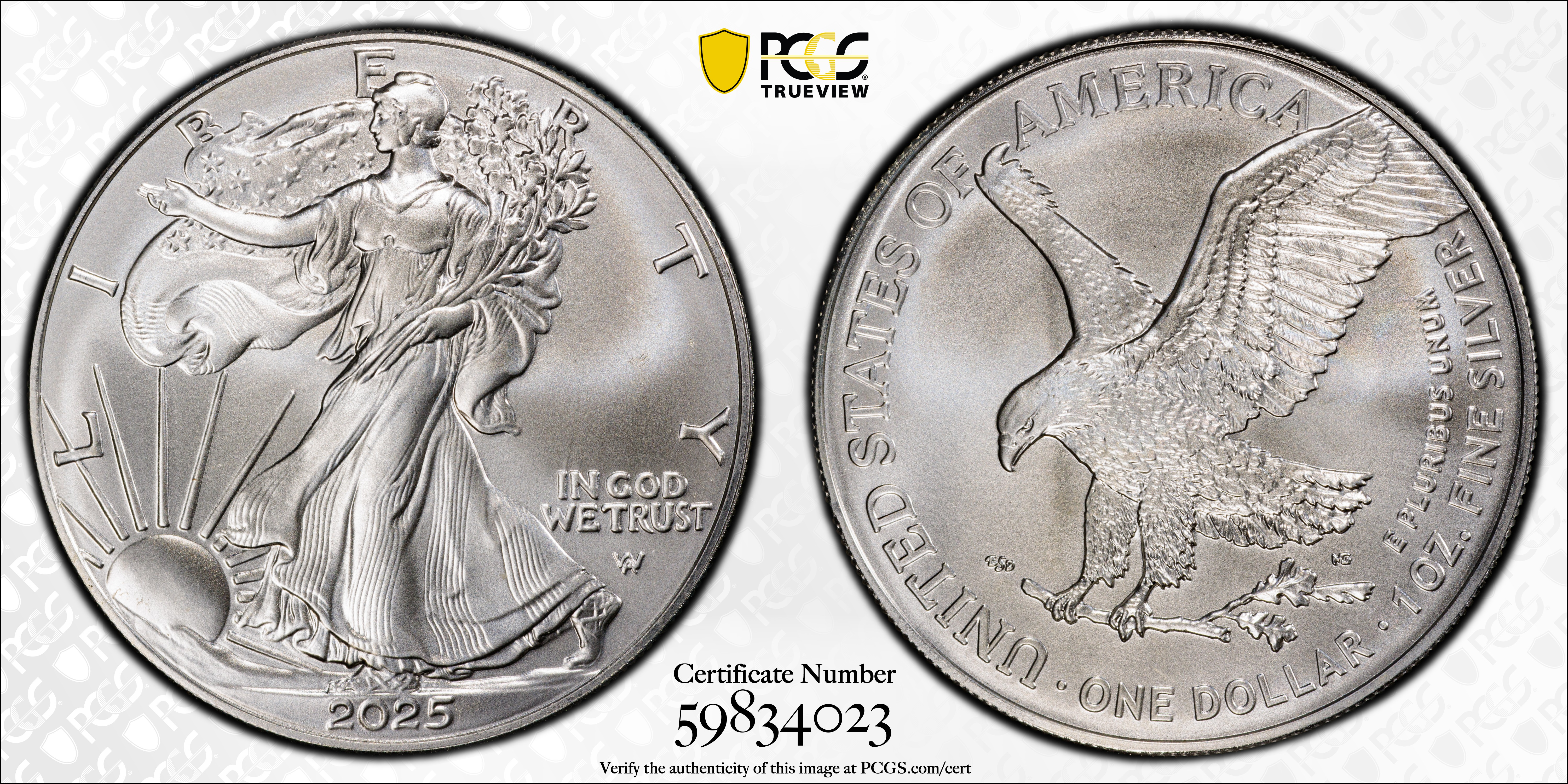 2025 $1 Silver Eagle MS68 Certification #59834023, PCGS #971093