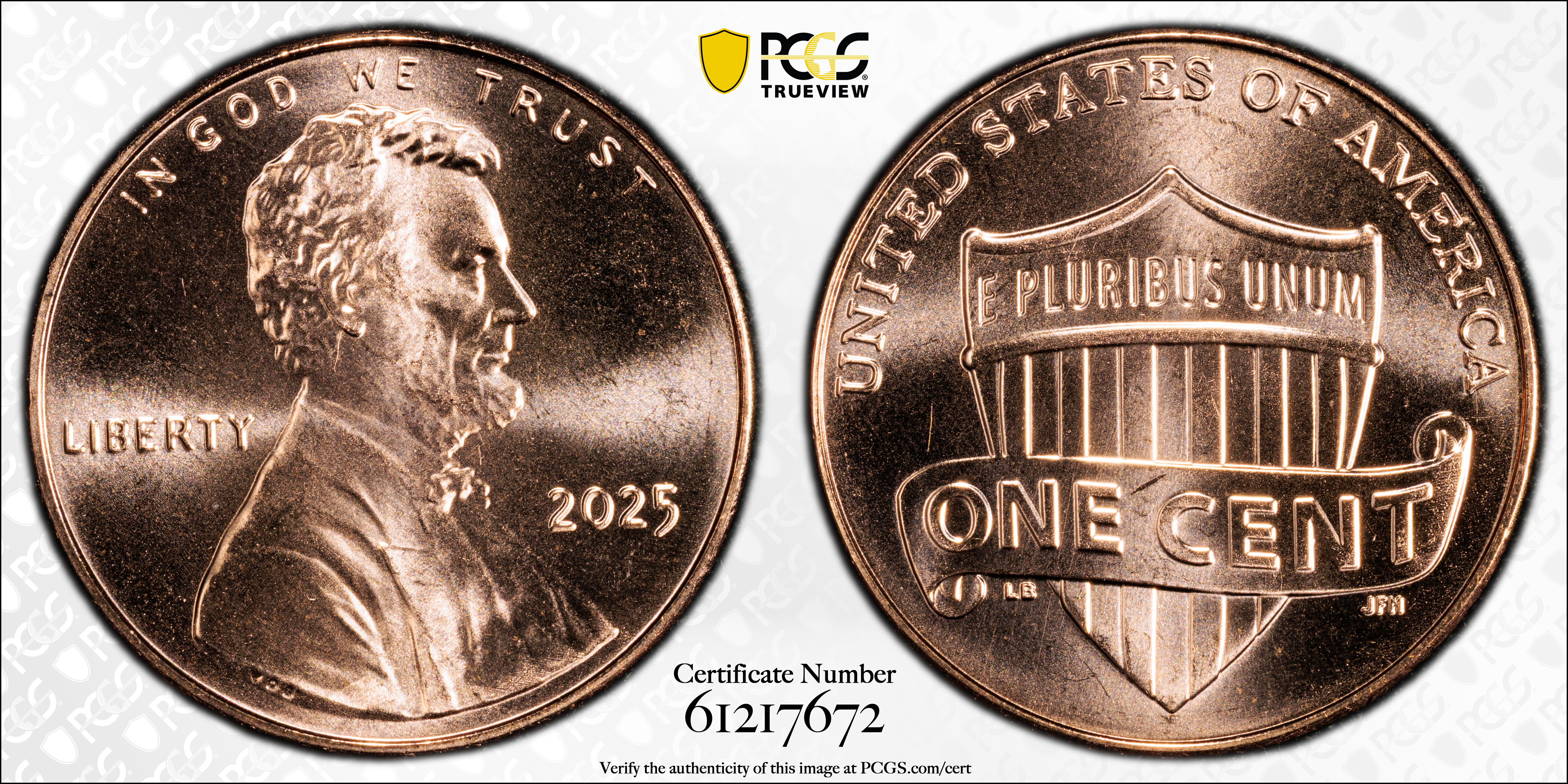 2025 1C Shield, RD MS66RD Certification #61217672, PCGS #977079