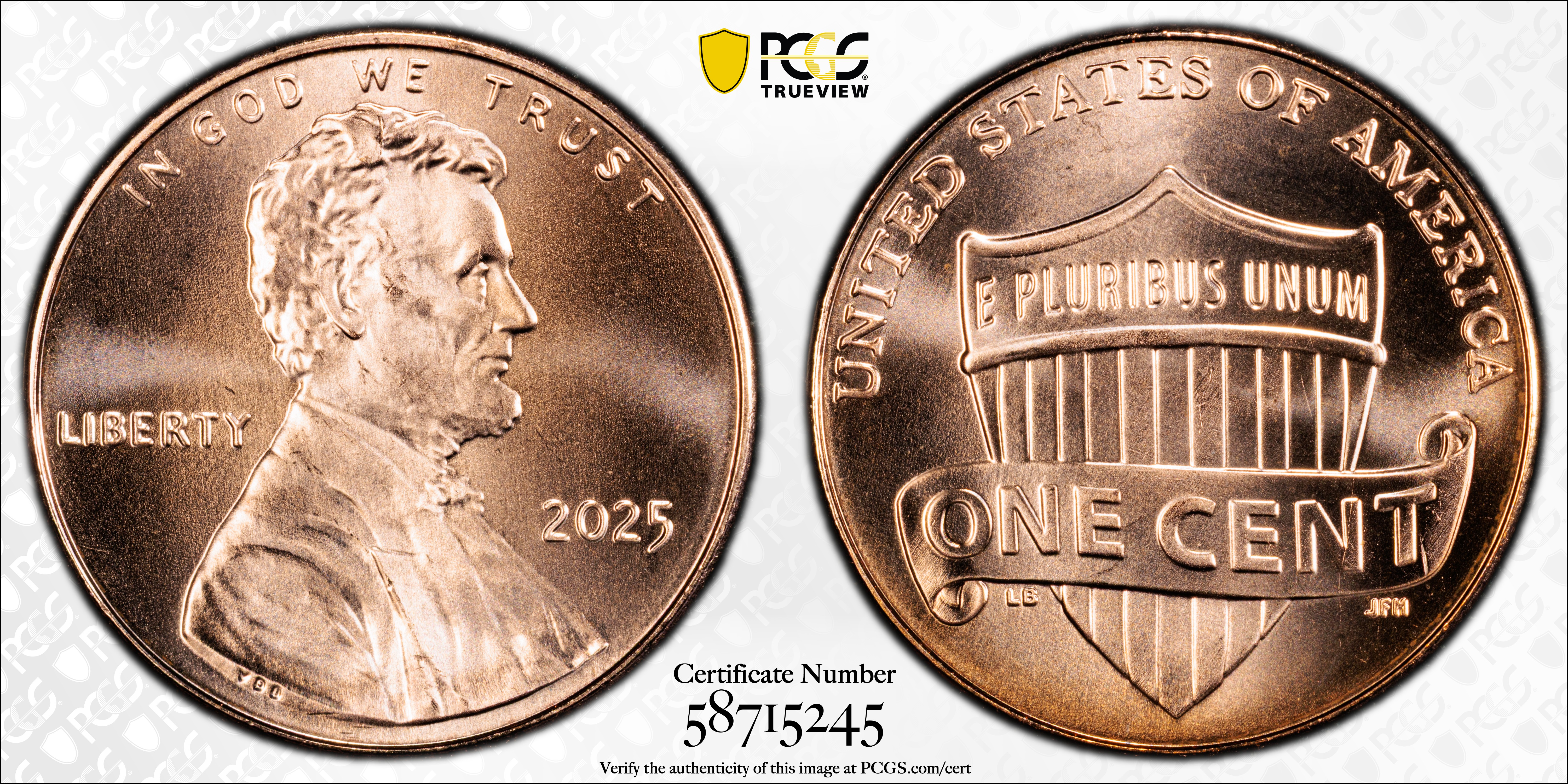 2025 1C Shield, RD MS68RD Certification #58715245, PCGS #977079