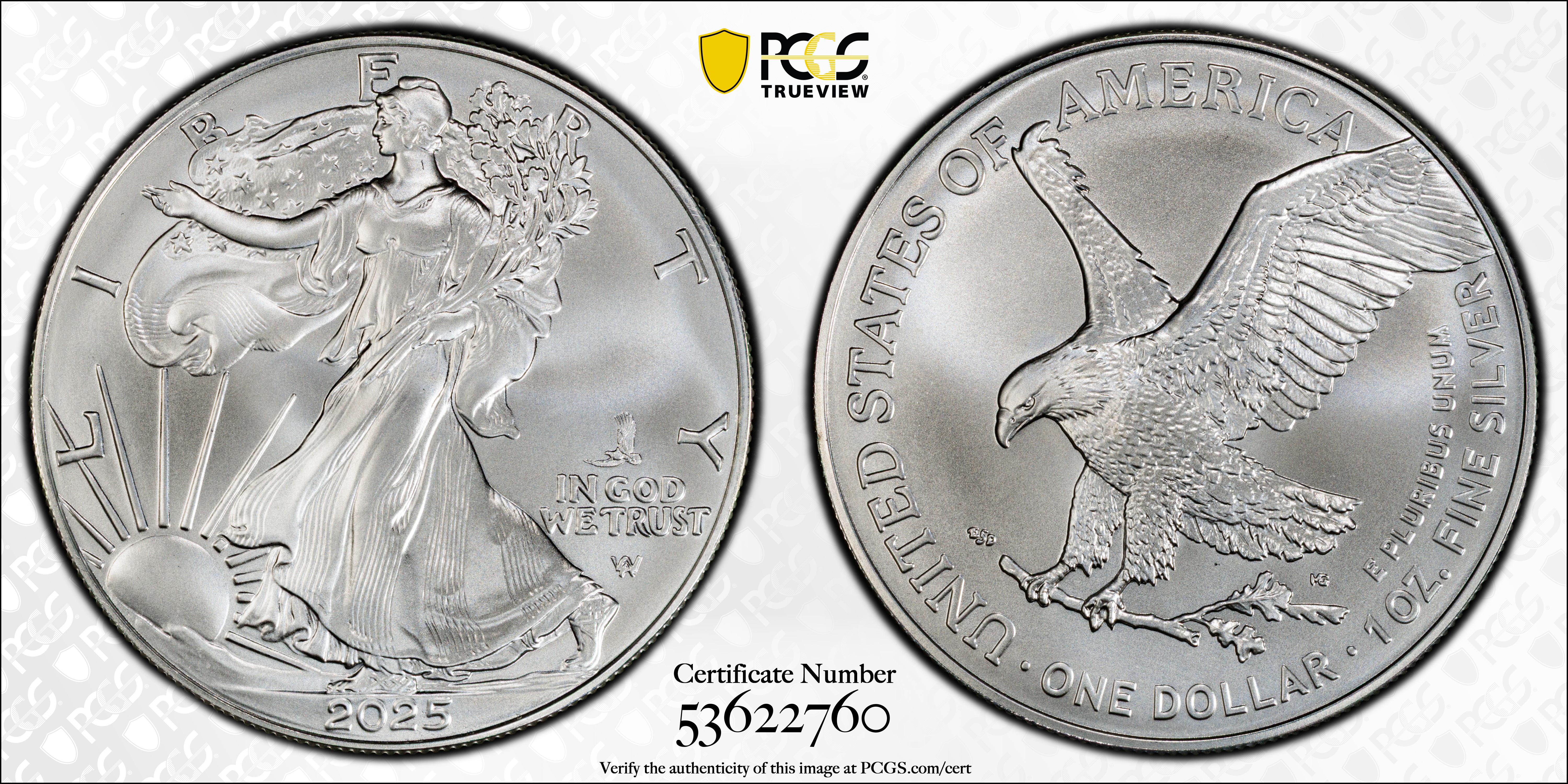 2025-(P) $1 Silver Eagle with Eagle Privy Struck at Philadelphia MS69 Certification #53622760, PCGS #978987