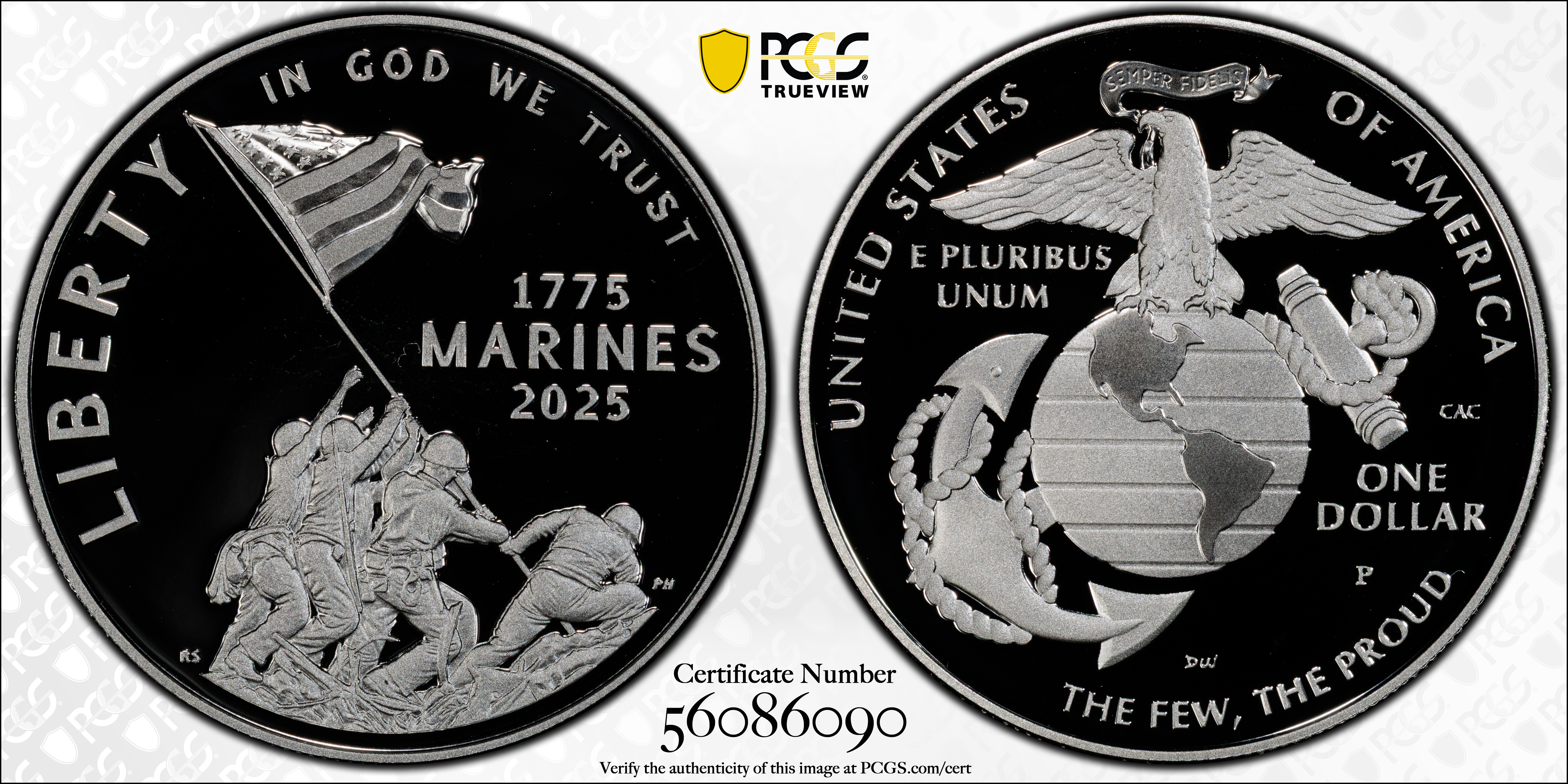 2025-P $1 USMC - 250th Anniversary, DCAM PR69DCAM Certification #56086090, PCGS #971022