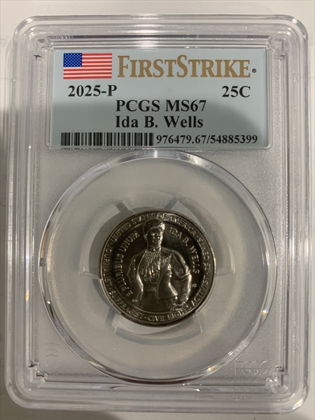 2025-P 25C Ida B. Wells First Strike MS67 Certification #54885399, PCGS #976479