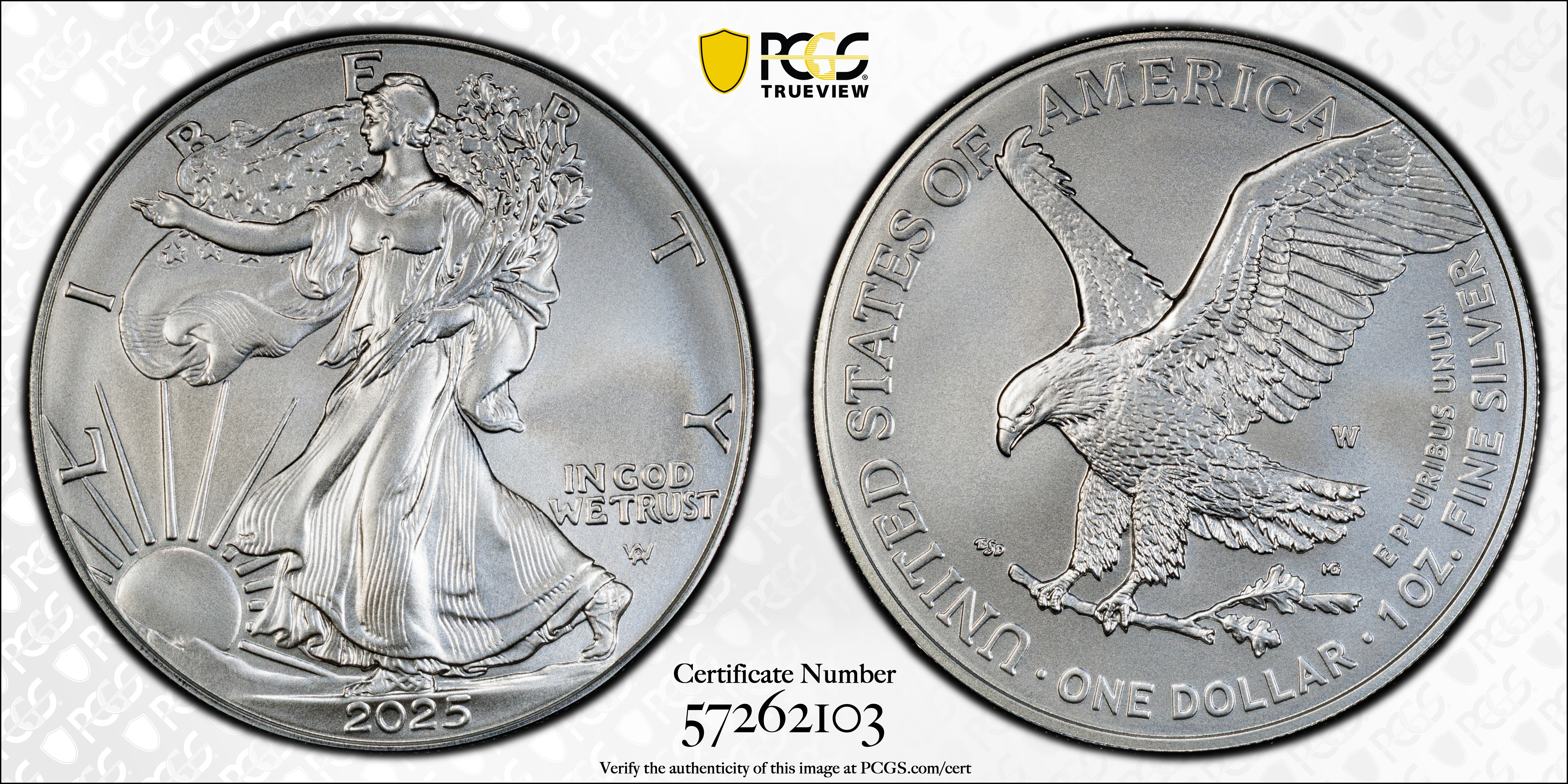 2025-W $1 Burnished Silver Eagle SP70 Certification #57262103, PCGS #982145