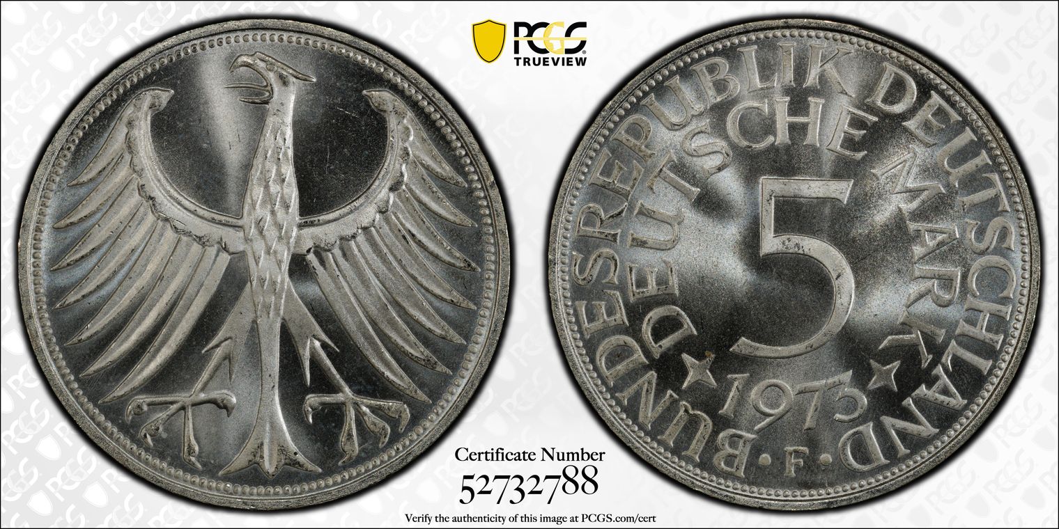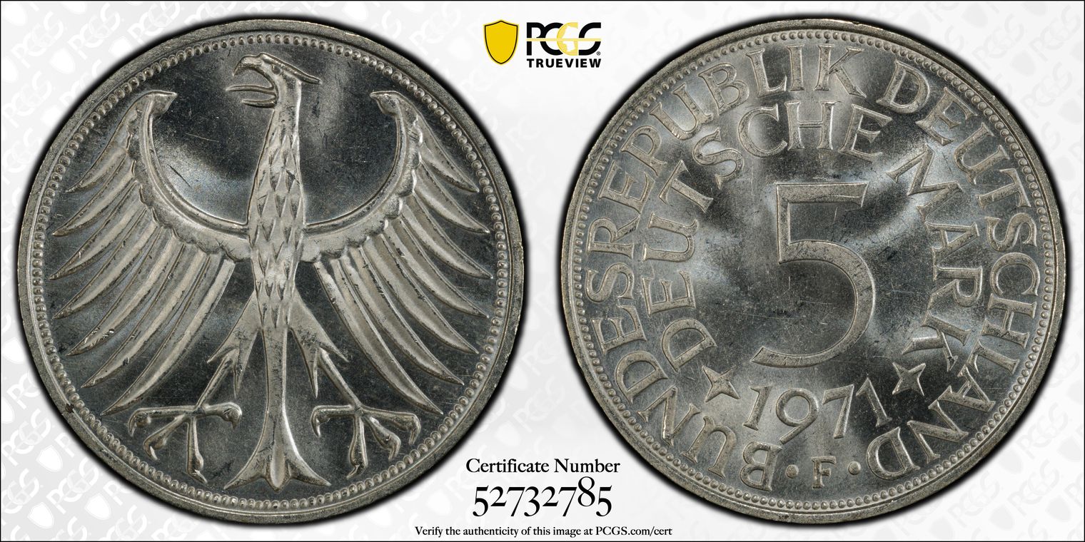 I purchased this from a dealer in 2021 for 10-15 euro that appeared to be breaking up a decent set. I self-submitted and supplanted my previous MS66. It's a really nice example overall that isn't exemplary in any one particular way. There appears to be an indendation across the 5 that the grader missed or deemed to be mint-made.