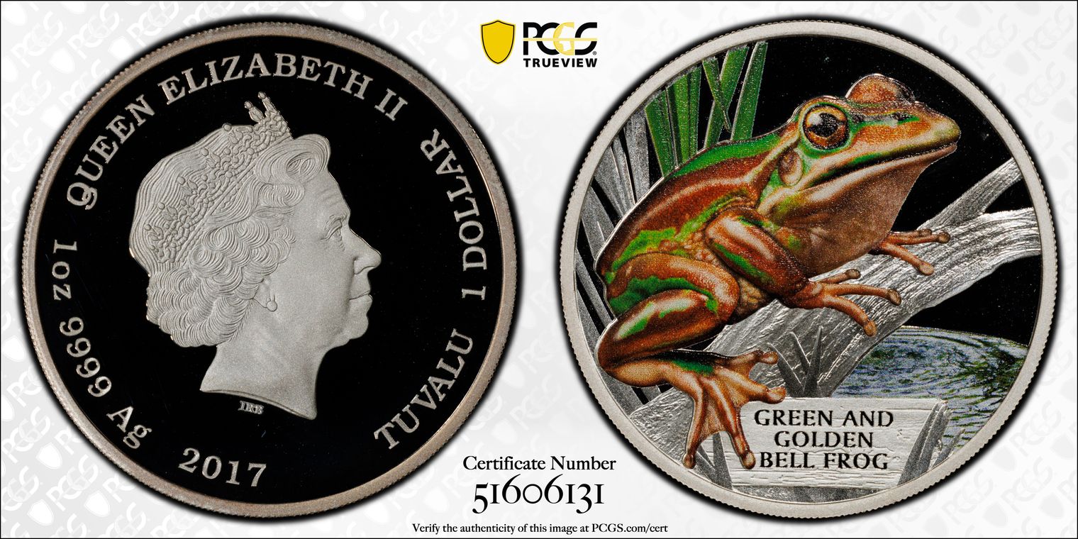 2017 $1 Green and Golden Bell Frog Colorized PR69DCAM