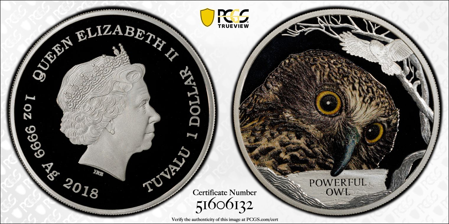 2018 $1 Powerful Owl Colorized PR70DCAM
