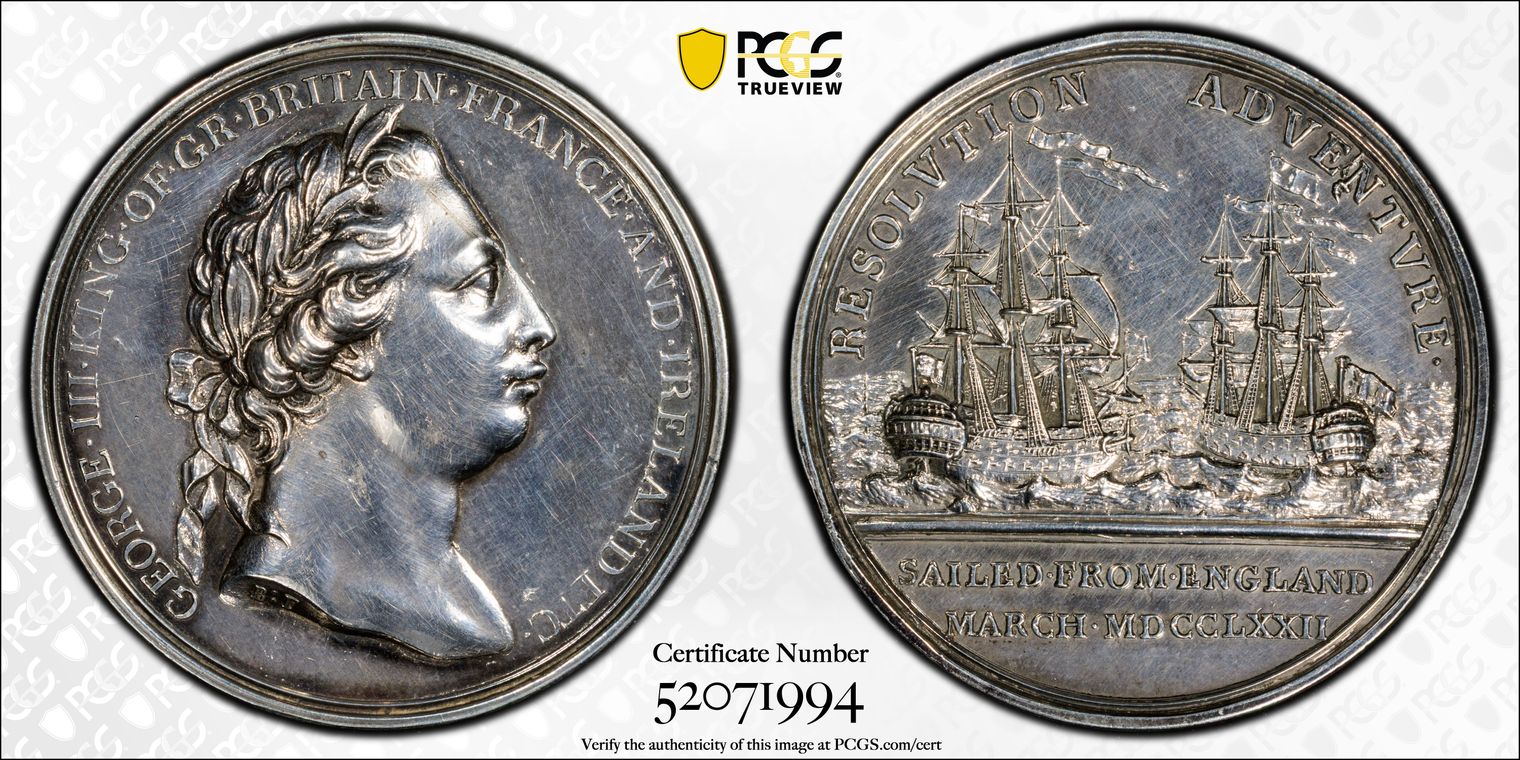 Rare medal commemorating the death of Captain James Cook. Only seven specimens known to exist.