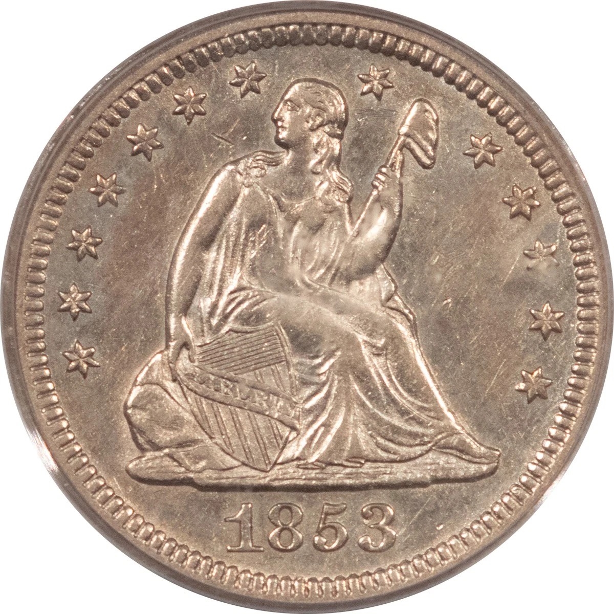 Unlisted in Briggs. Nice for grade. Has a die break on reverse from rim D in dollar up to shield.