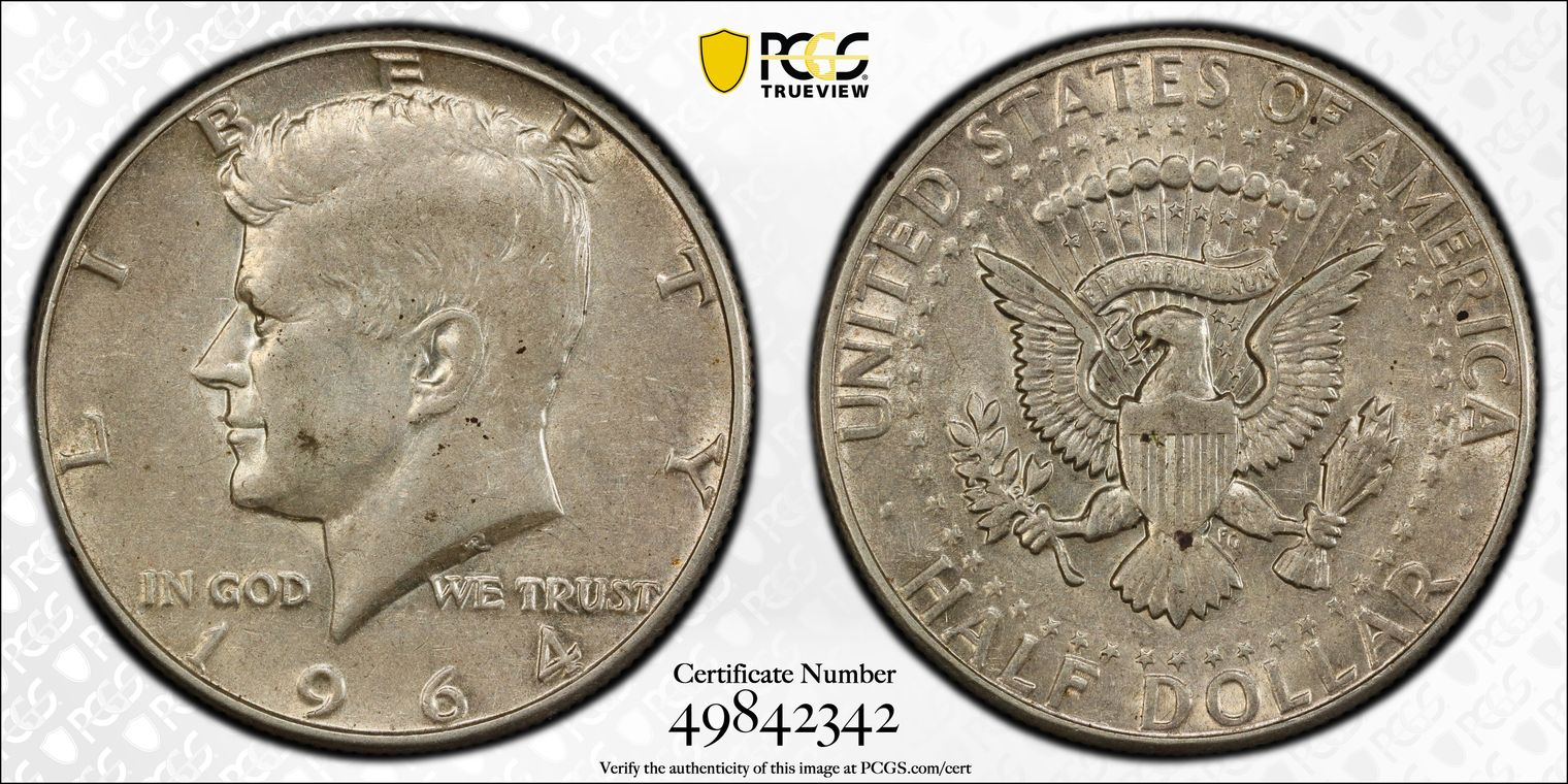 Grade: Almost Uncirculated 50 (AU-50) ANA Description: Traces of wear at the highest points of the coin. At least half of the original mint luster remains. PCGS Description: Trace of wear now seen on higher points of design. Bits of luster may remain.