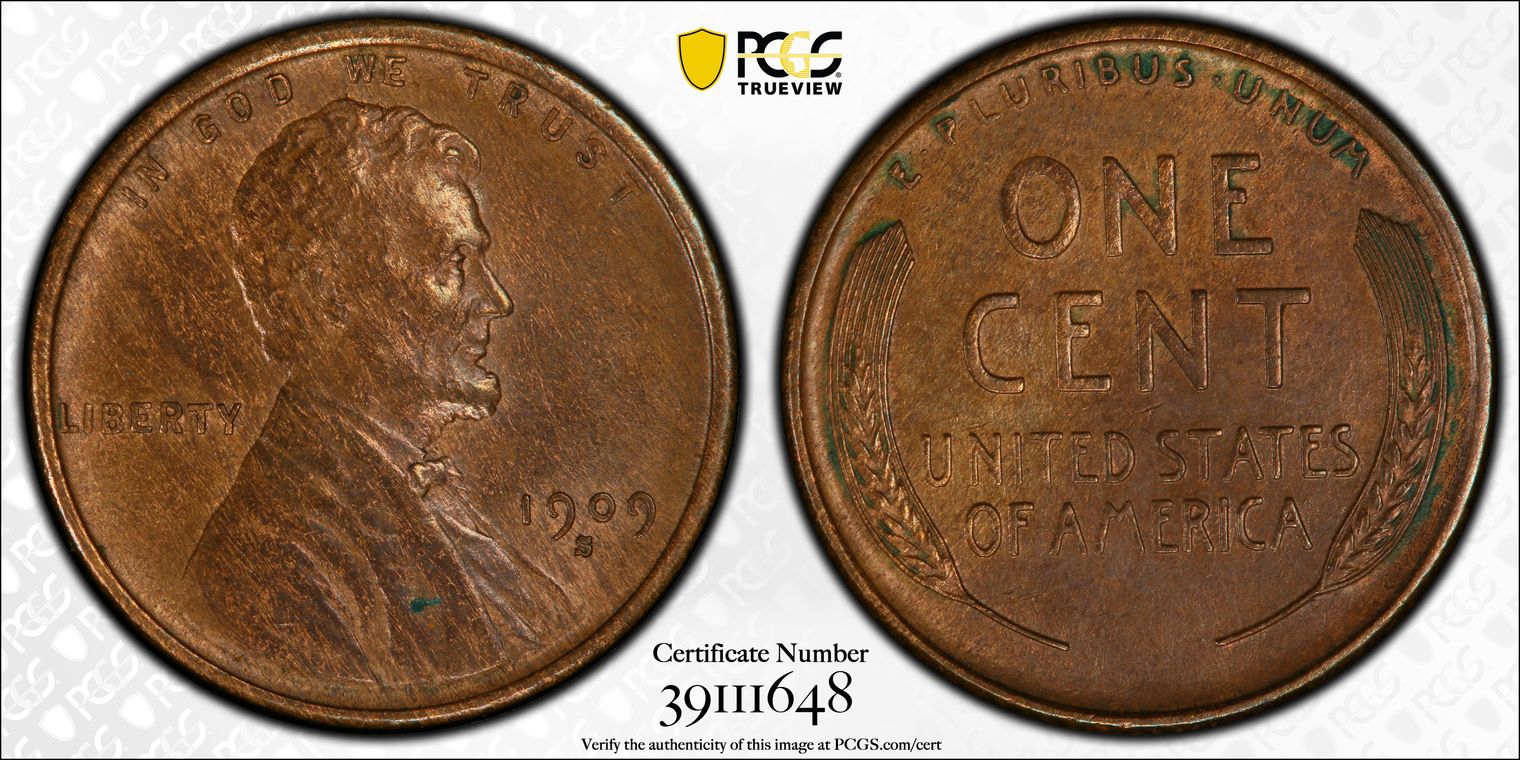 1909-S 1C Lincoln AU50BN