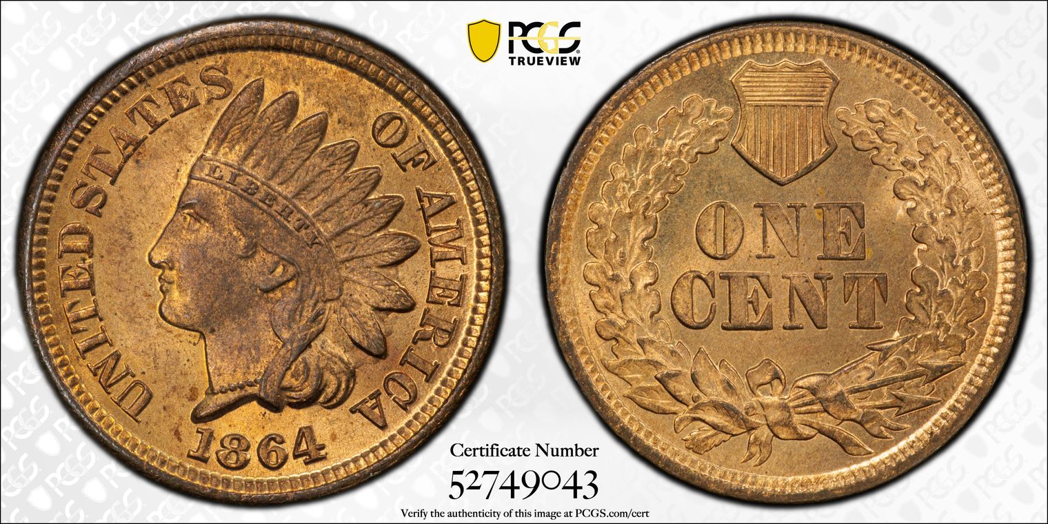 1864 1C Bronze MS65RB