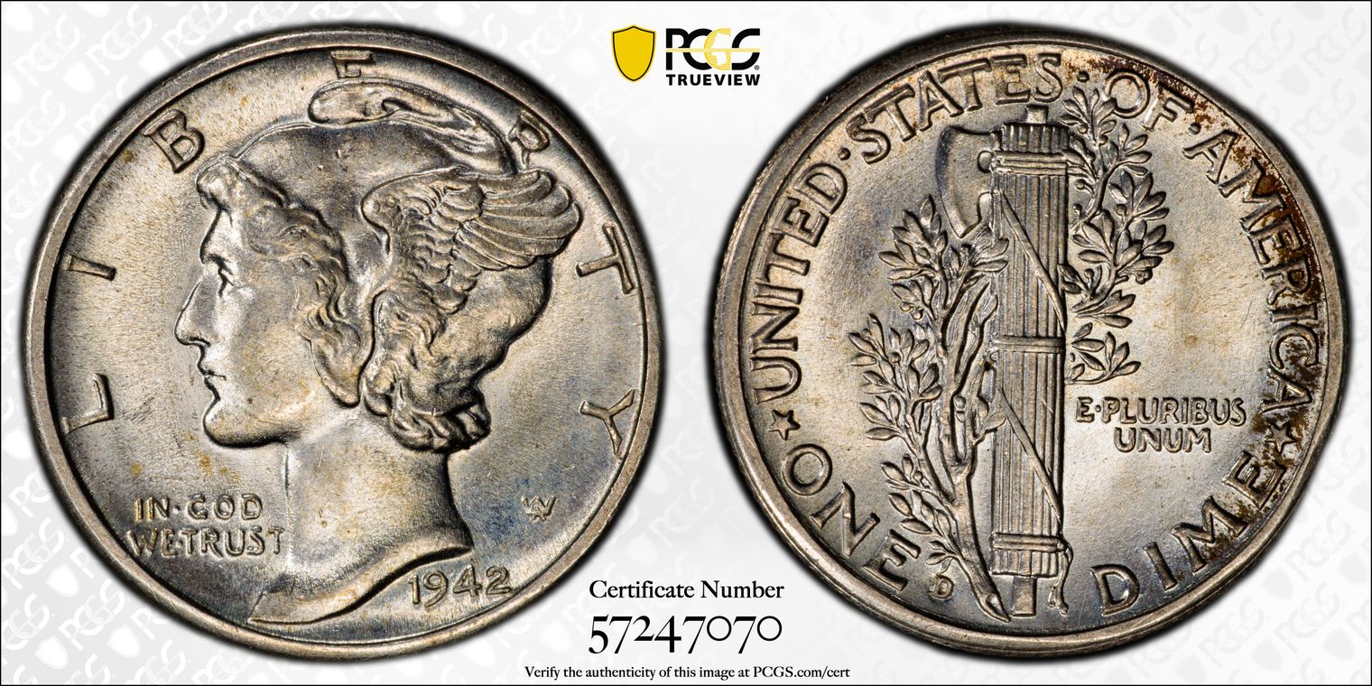 1942-D 10C MS62FB