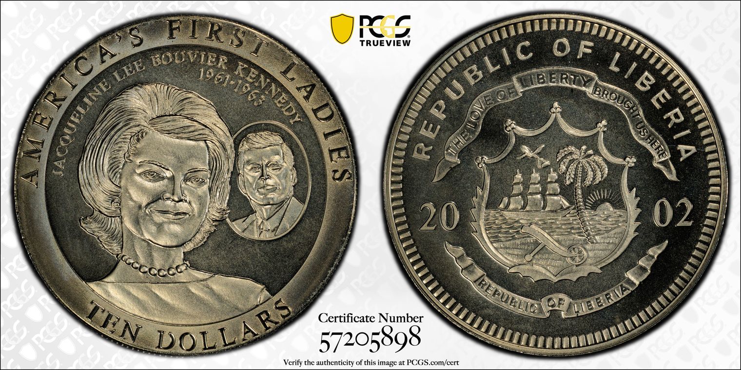 2002 Liberia $10 Goodbye Greek Currency 10,000 Greek Drachma (Georgios Papanikolaou) PCGS MS68 { PCGS-5 }. With the introduction of the Euro for currency within the EU, regional money such as the Greek Drachma went the way of the Dodo Bird. This African nation commemorated this shift with the “Our Currency Goes” series of copper-nickel $10 coins for these 12 nations including Greece. This commemorative coin has the standard Liberian Coat of Arms on the reverse. The bill features Dr. Georgios Papanikolaou a Greek medical pioneer.