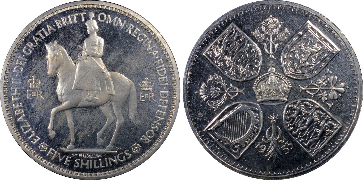 South Africa, 5 Shillings Dated 1953. Elizabeth II Prooflike, KM#52, Mintage 8000. PCGS PL66.