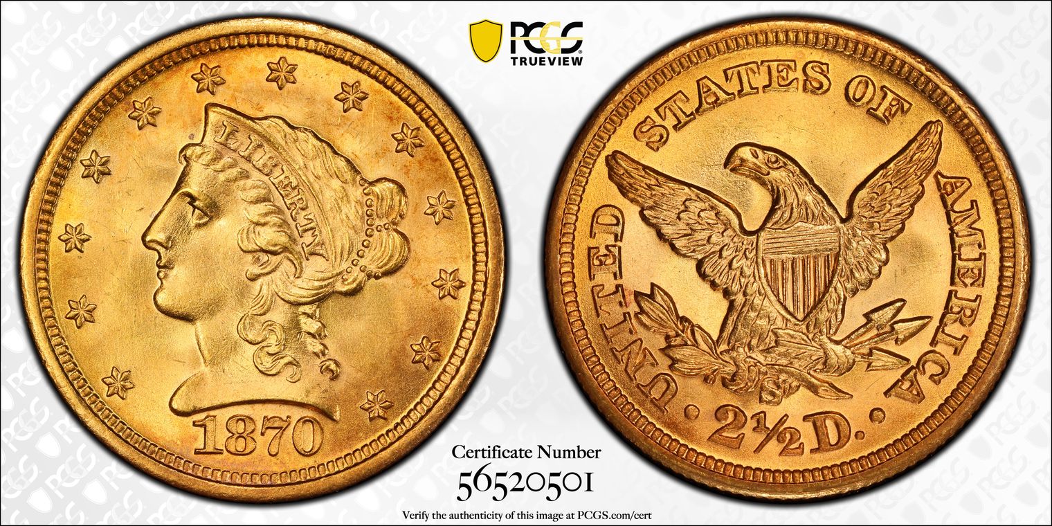 1870-S $2.50 MS63+