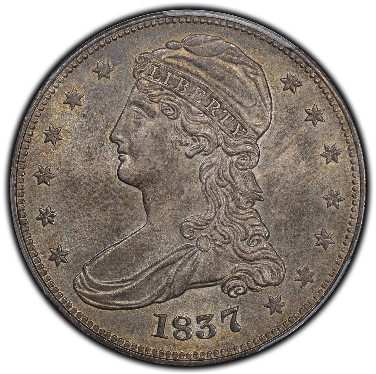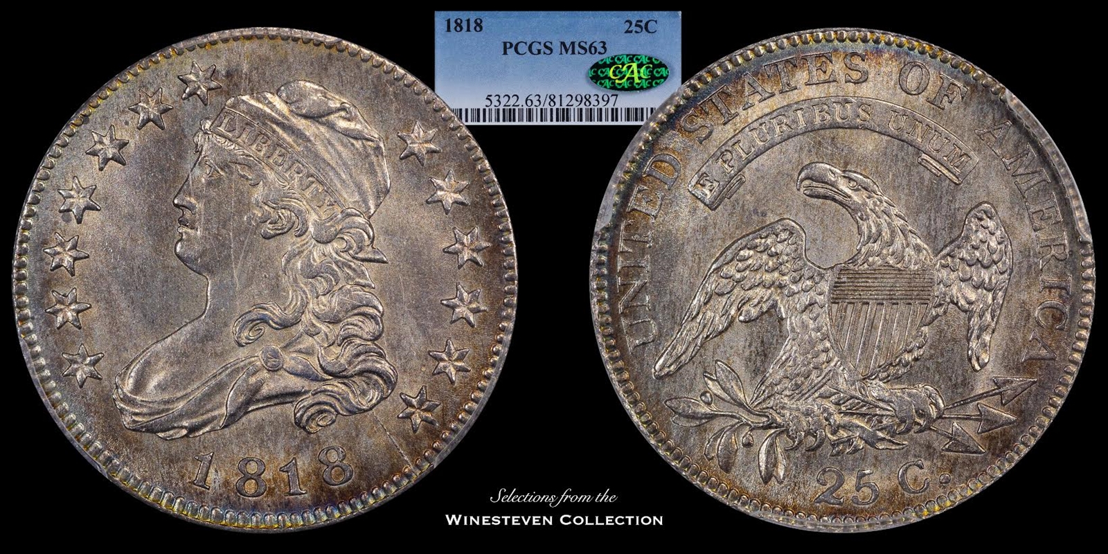 CAC. There are a total of 49 in this grade (26 by PCGS and 23 by NGC). Of those 49 in this grade, ONLY TWO merit a CAC sticker! Some die cracks on the obverse, including the so-called “Scarface” die crack.