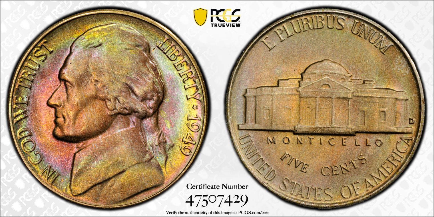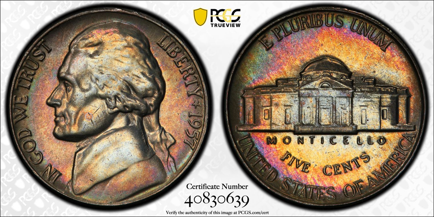 This is the nicest toning on a Jefferson Nickel from the 60's that I've ever seen!!! Off the chart Rainbow Rings on both sides A colorful work of art and what a great coin True View