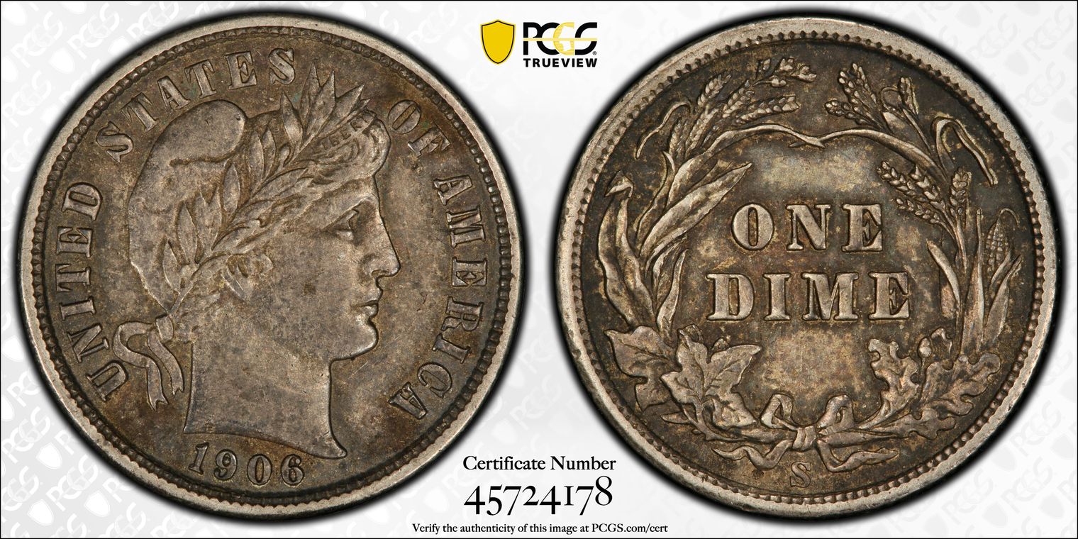 1906-S 10C AU53